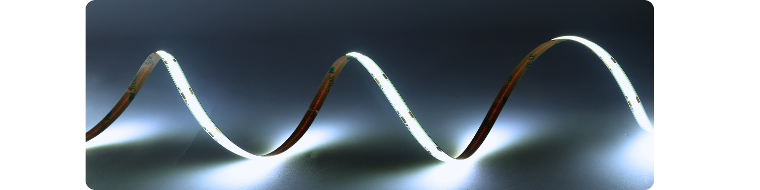 Díky technologii COB LED pásek svítí rovnoměrným a měkkým světlem bez viditelnosti jednotlivých diod, které i v těch nejmělčích LED profilech poskytuje lineární efekt světla bez tmavých a zářících míst.