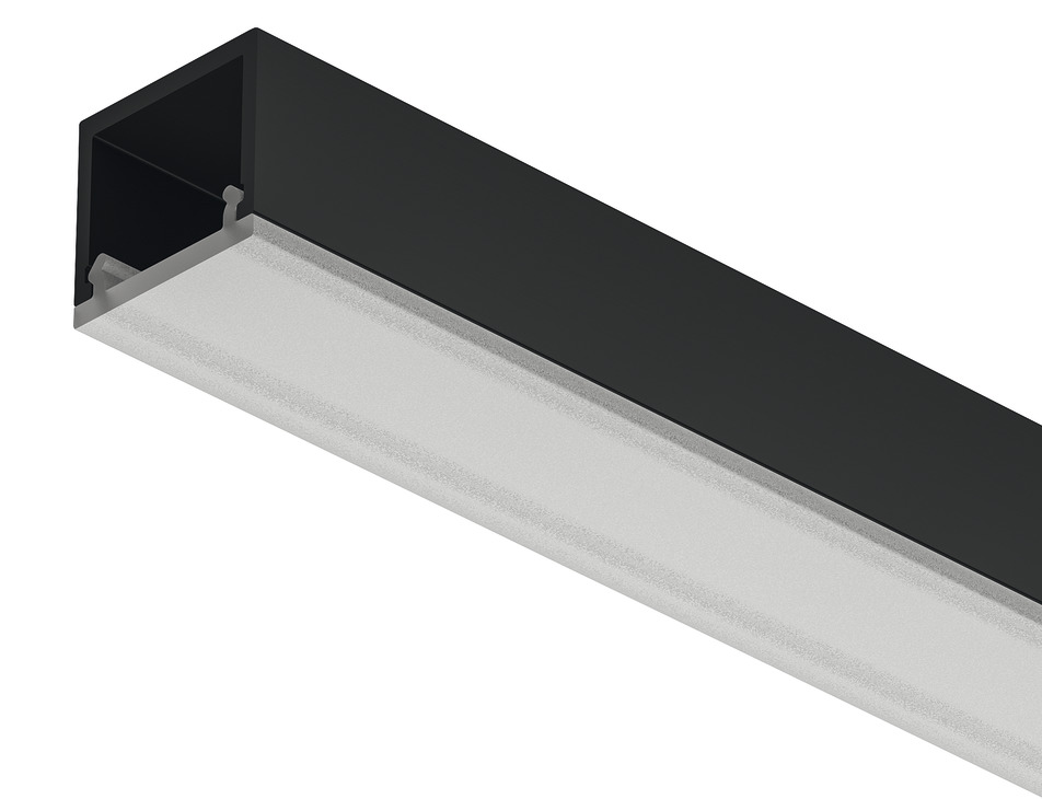 - LED profil LOOX5, povrchový 2101, hliník, černý elox, 3v1 - LED profil + difuzor Opál + plastové koncové záslepky (2ks), 3m