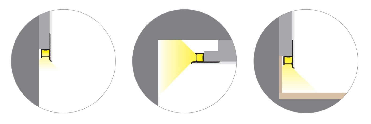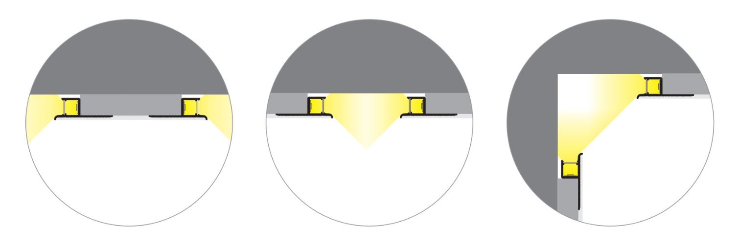 Tento profil je po finální úpravě skrytý a nabízí mnoho možných uspořádání. Prostoru dodává moderní, minimalistický šmrnc obohacený o působivé, nepřímé, lineární osvětlení.