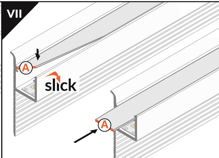 Montáž difuzorů se provádí jednoduchým zakliknutím difuzoru z vrchní strany profilu.