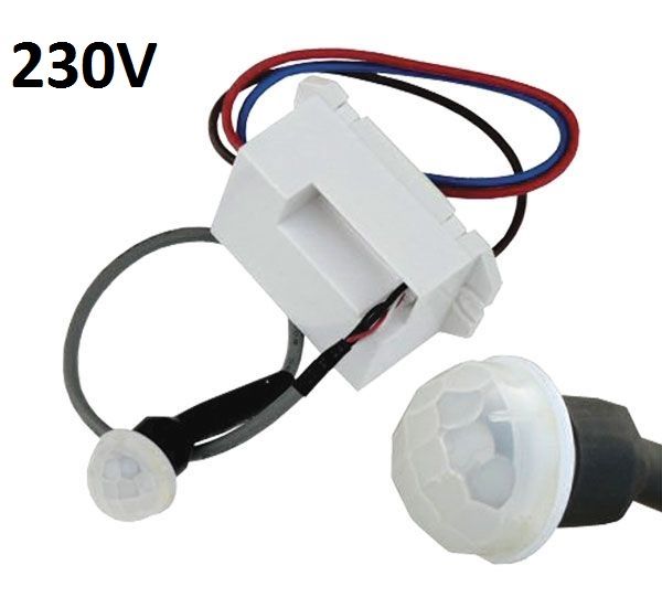 Pohybové čidlo PIR 230V s externím senzorem pro spínání 230V LED produktů nebo i jiných 230V světelných zdrojů.